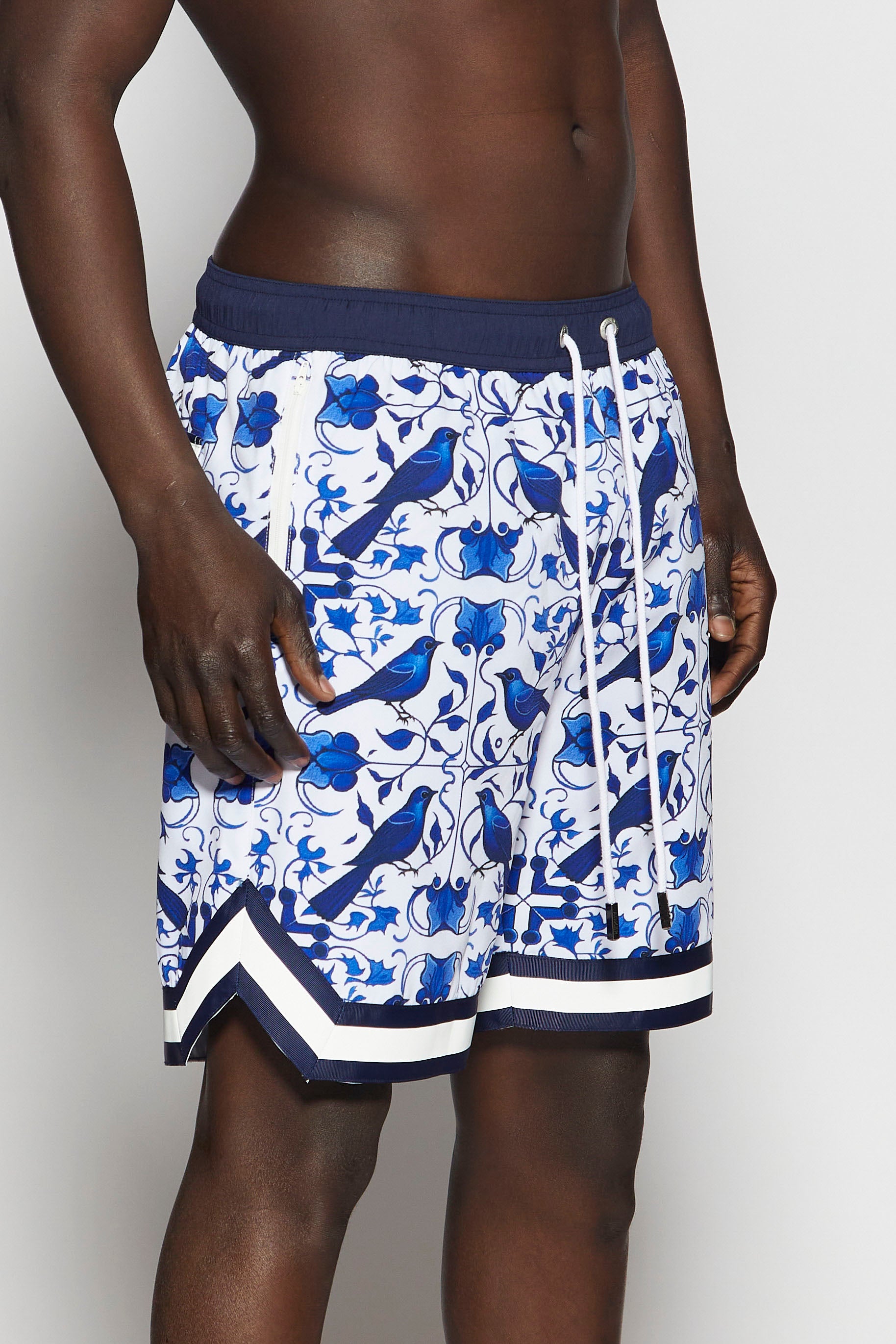 Immerse yourself in elegance with our premium swim shorts, crafted from high-quality polyester for a sleek and comfortable fit. Featuring a striking botanical print, this piece is designed to make a sophisticated statement by the water.