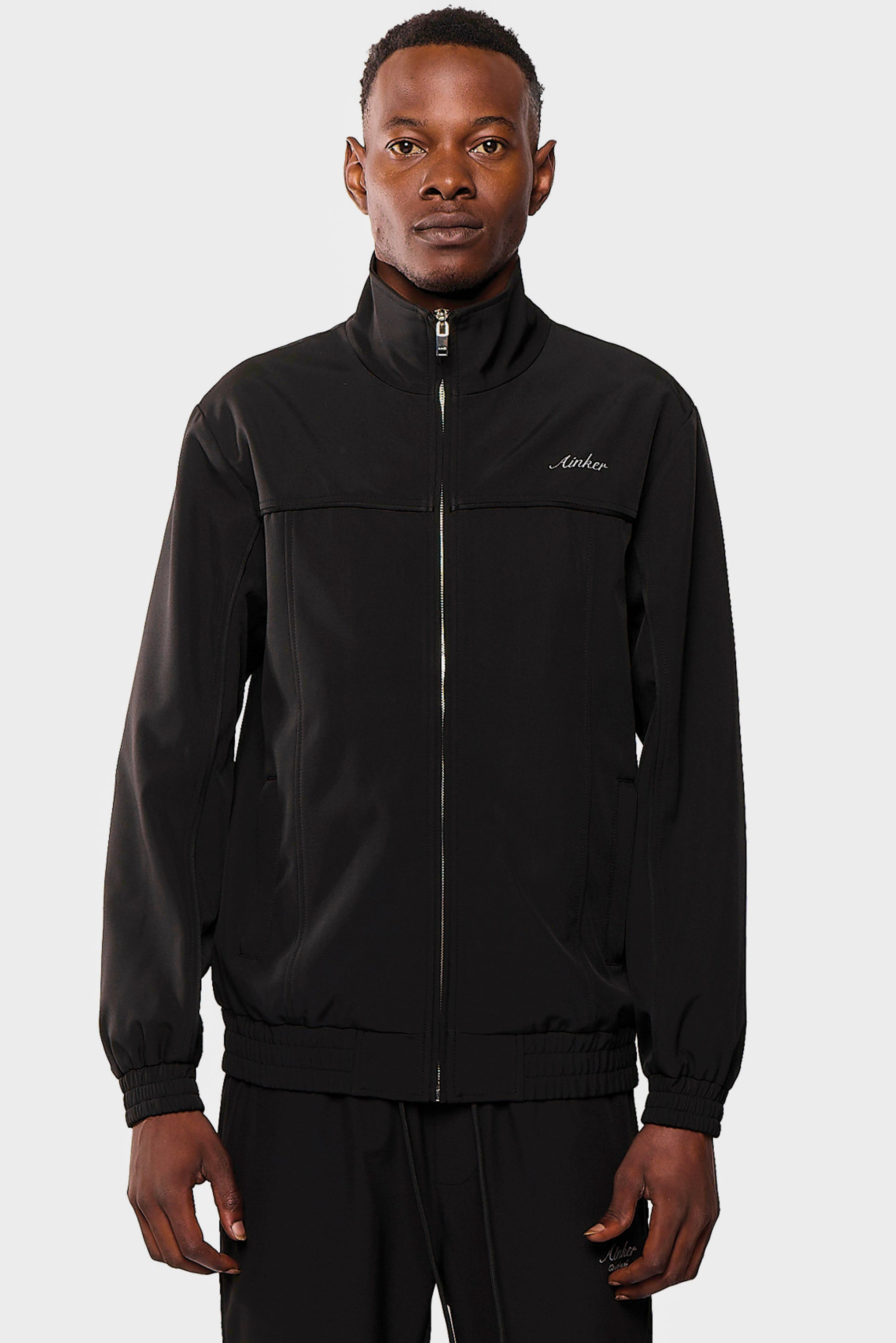 This luxury zip-up jacket is crafted from premium dacron for a sleek and elevated look. It features a relaxed fit with elasticated cuffs and hem, delivering effortless style and comfort.