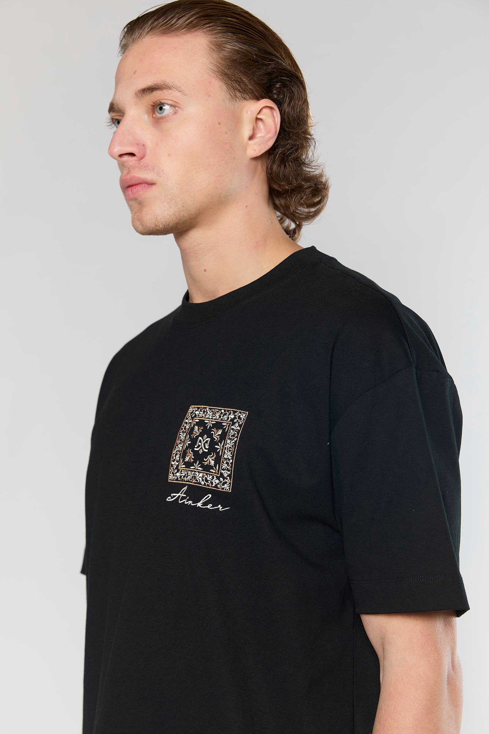 Crafted from 100% premium cotton, this t-shirt combines timeless elegance with everyday comfort in a clean, structured silhouette. Available in white, black, navy, mocha, off-white and light blue. model is 186 cm tall and wears a size Large for a relaxed, modern fit.