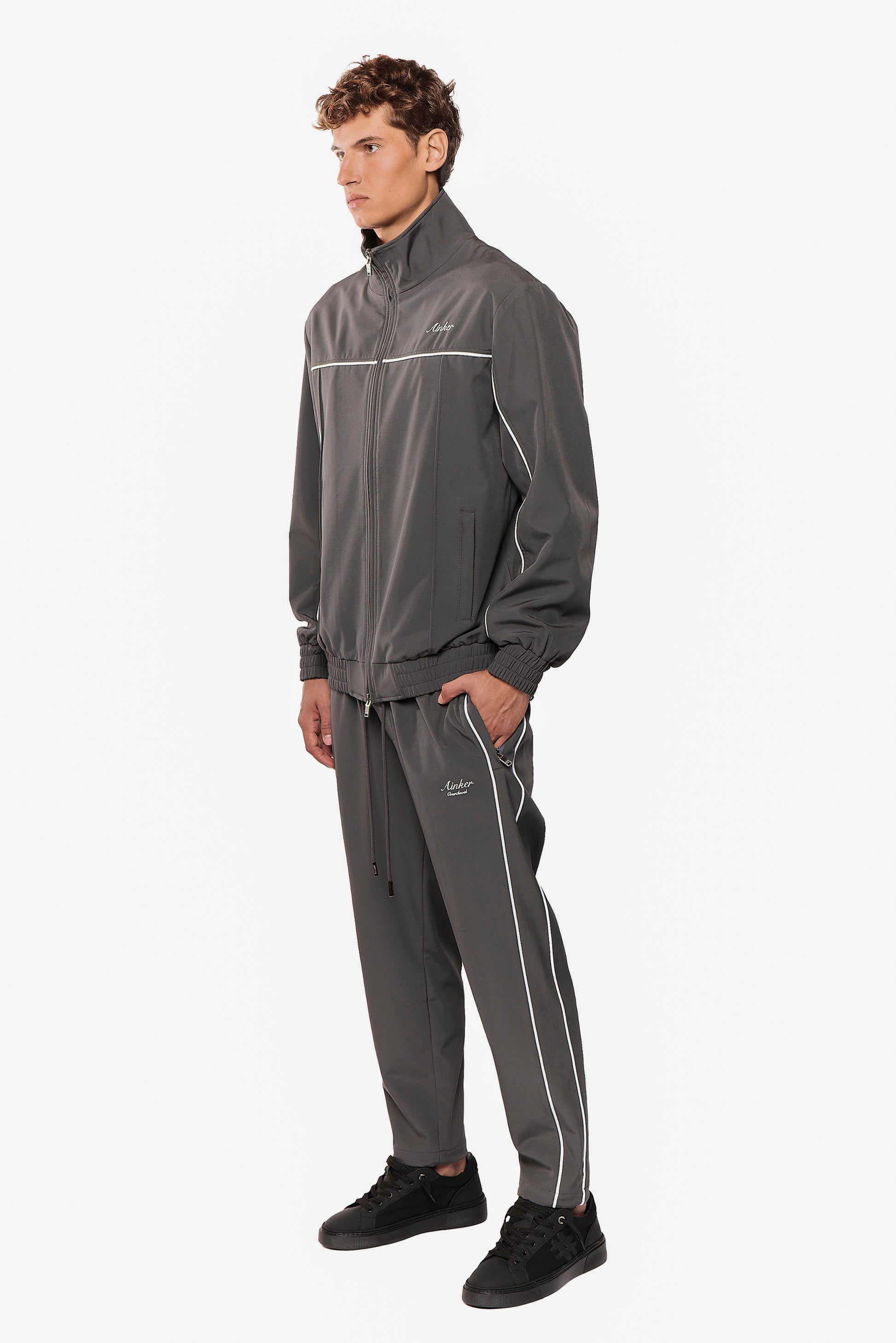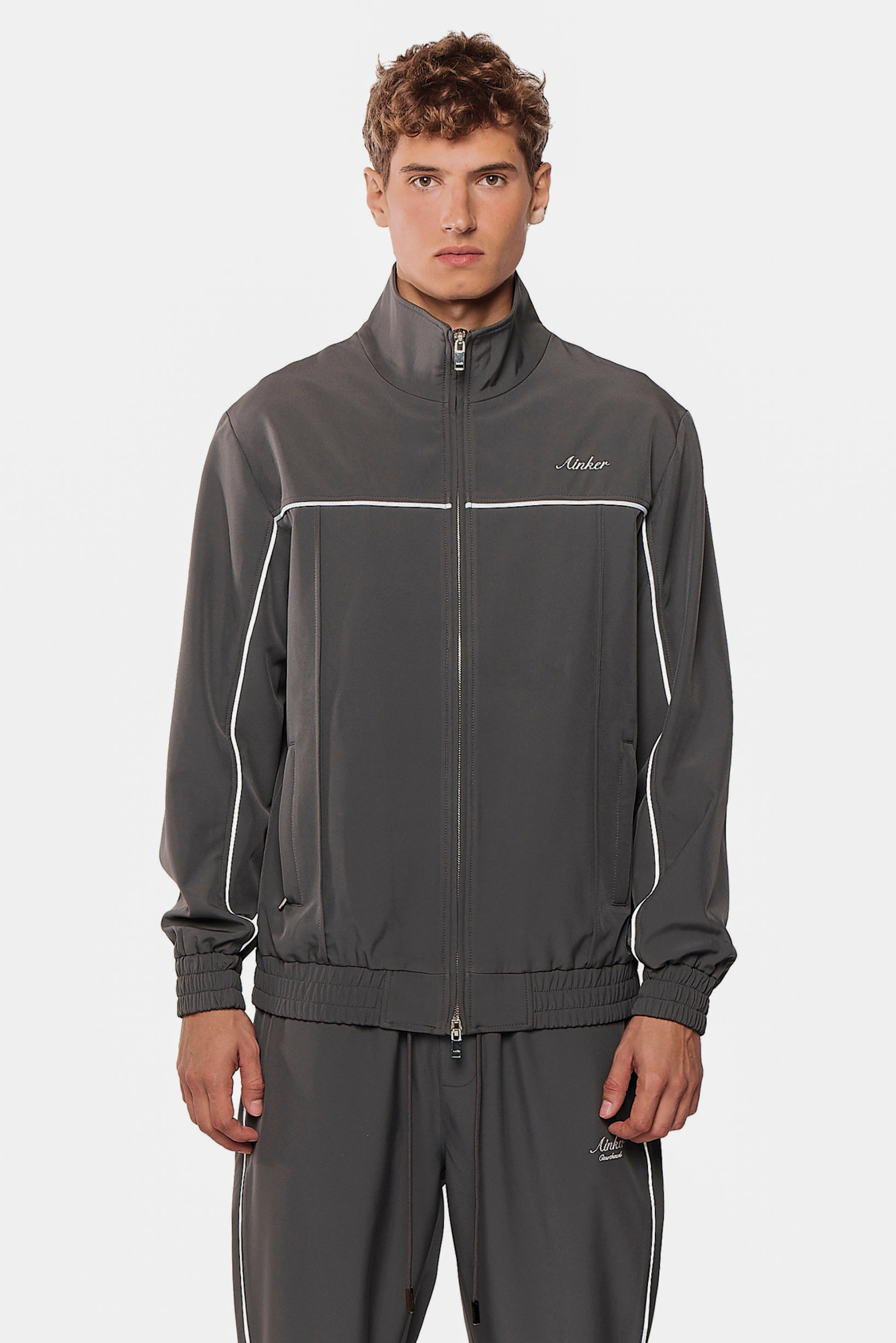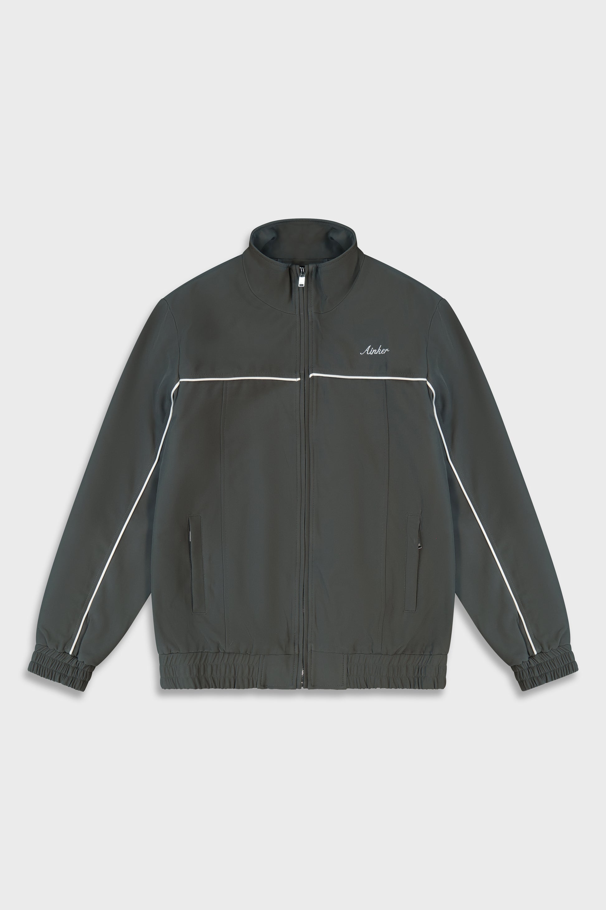 This luxury zip-up jacket is crafted from premium dacron for a sleek and elevated look. It features a relaxed fit with elasticated cuffs and hem, delivering effortless style and comfort.