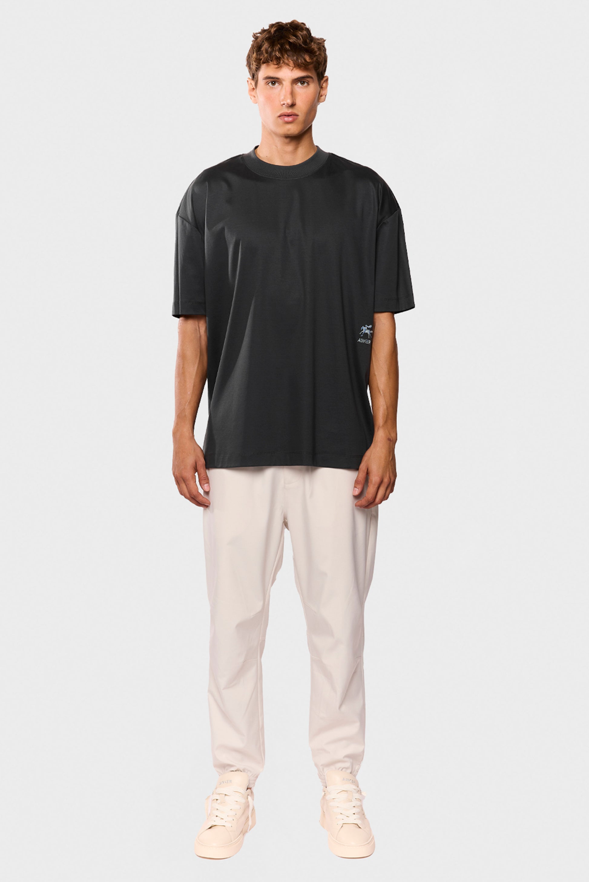 Made from 100% mercerized cotton, this t-shirt has a smooth, luxurious feel with a subtle sheen. The relaxed fit and Triangle embroidery make it an easy go-to for effortless style.