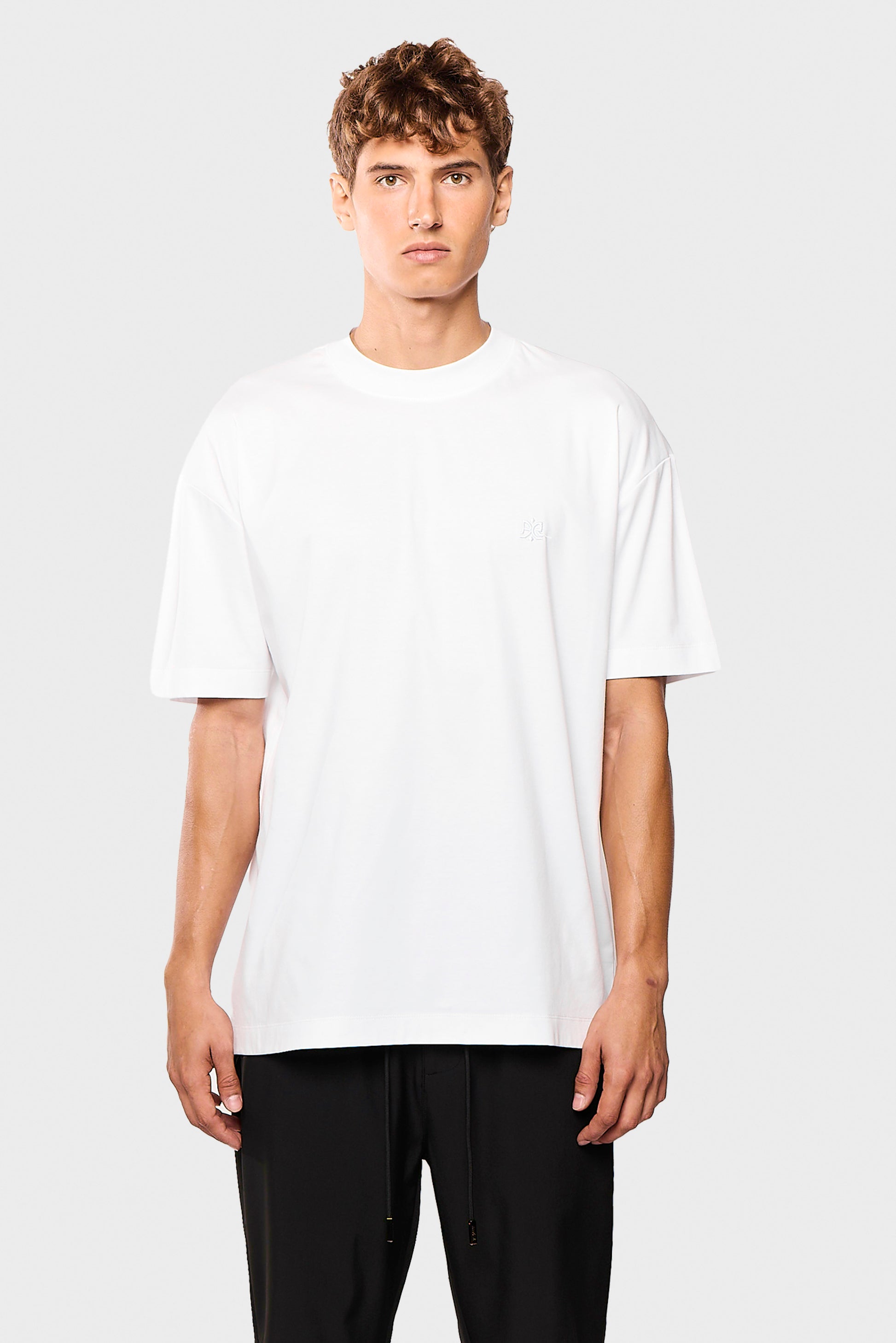 Made from 100% mercerized cotton, this t-shirt has a smooth, luxurious feel with a subtle sheen. The relaxed fit and Triangle embroidery make it an easy go-to for effortless style.