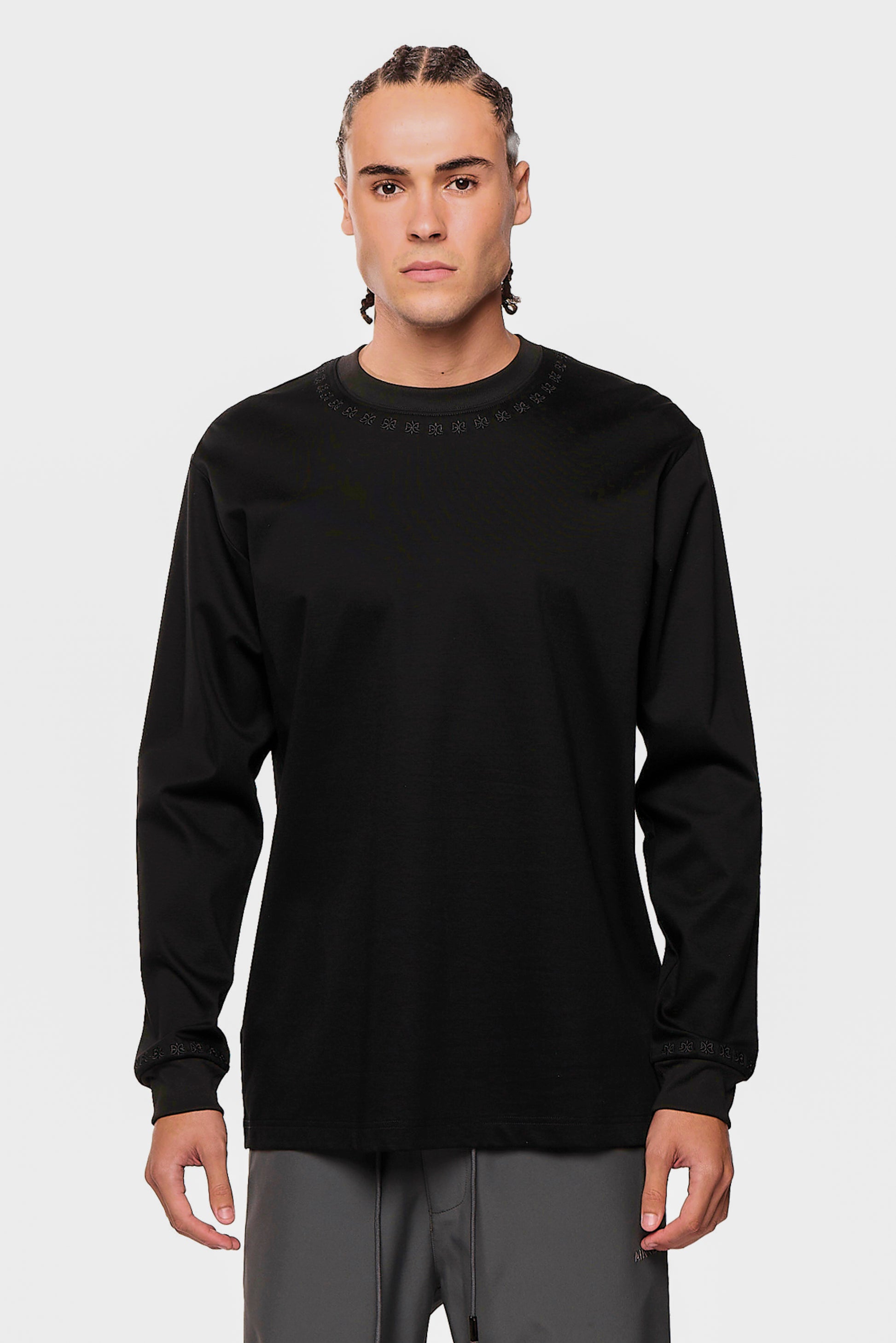 This long-sleeve t-shirt is made from premium mercerized cotton, giving it a smooth texture and subtle sheen.