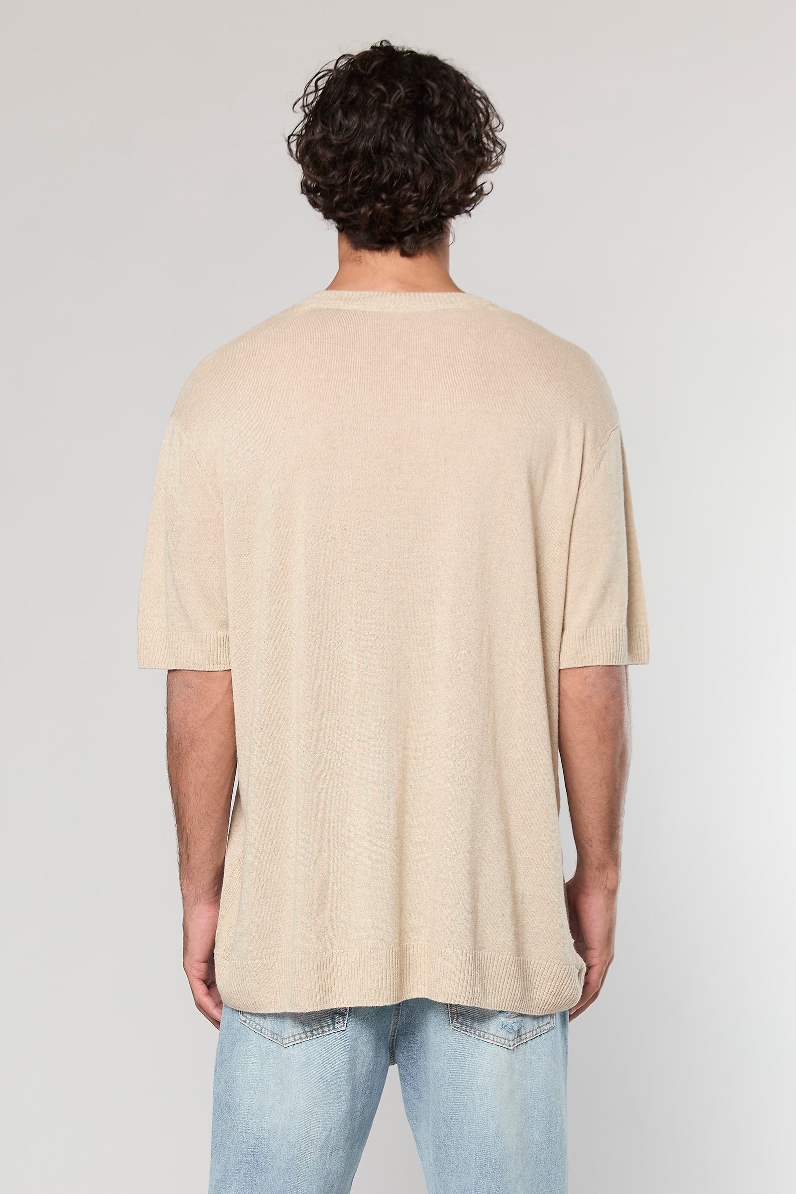 Designed for a relaxed silhouette, the model wears a size large at 1.86m, ensuring a perfect drape. Available in black and white.